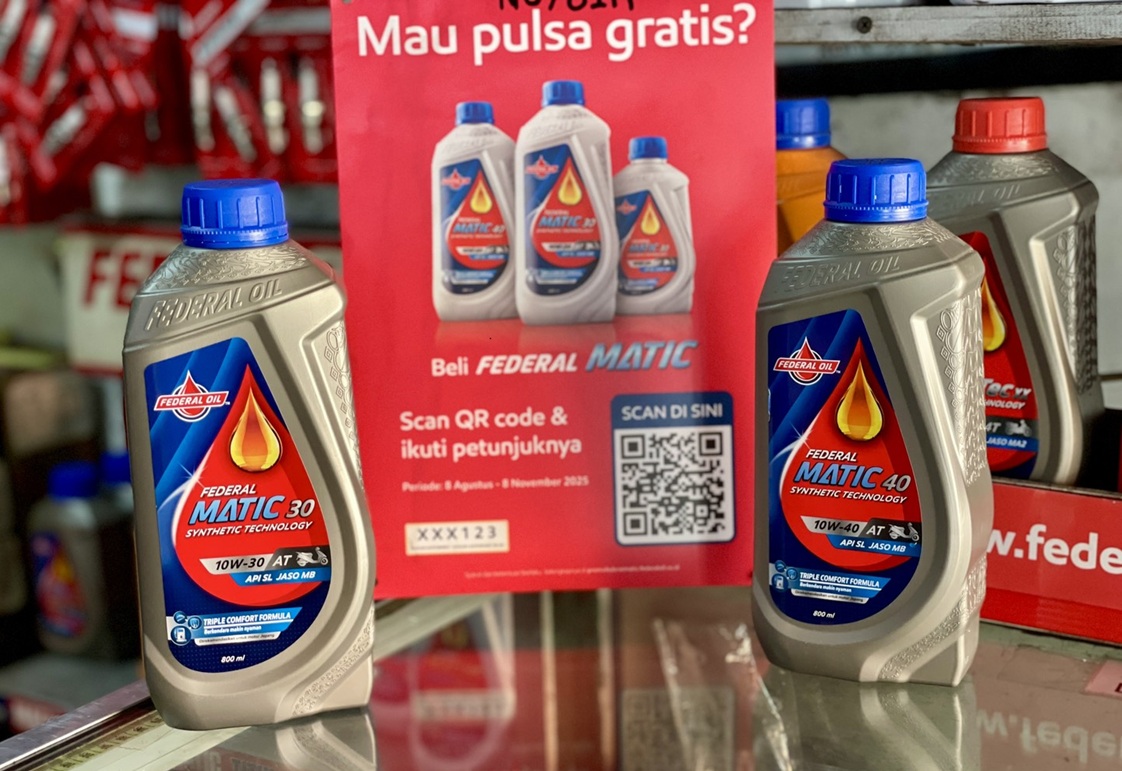 Program yang berlangsung sejak Agustus hingga November 2025 ini memberikan pulsa senilai Rp 5.000 untuk setiap pembelian produk Federal Matic di bengkel rekanan Federal Oil Center (FOC) bertanda khusus.