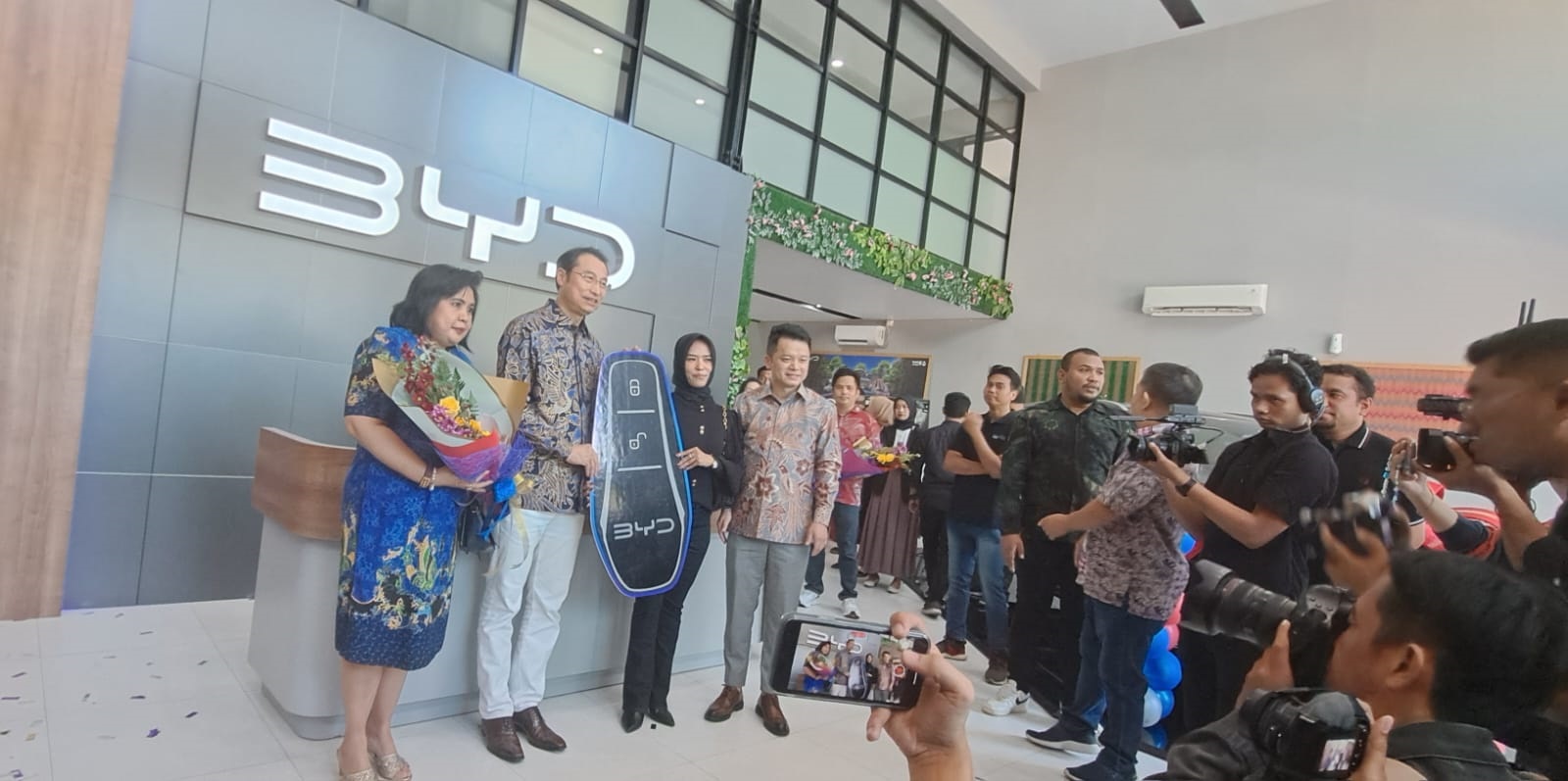 Acara grand opening 3 diler anyar ini juga dihadiri Mr Liu Xueliang dan Eagle Zhao, serta Nathan Sun (Direktur Operasional BYD Motor Indonesia).