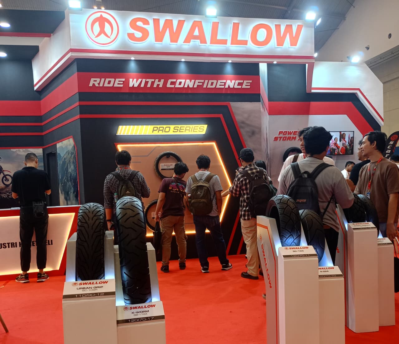 Di booth Swallow IMOS 2025, pengunjung dapat melihat langsung detail teknologi ban Power Storm XP, Plus ada promo eksklusif selama pameran.