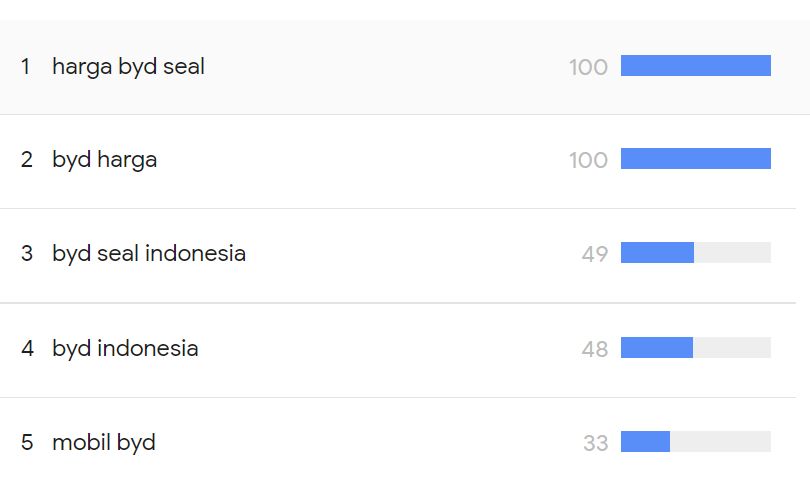 Konsumen yang tertarik pada BYD Seal dan Dolphin serta mencarinya di Google search, juga mencari tahu lebih lanjut tentang BYD Atto.