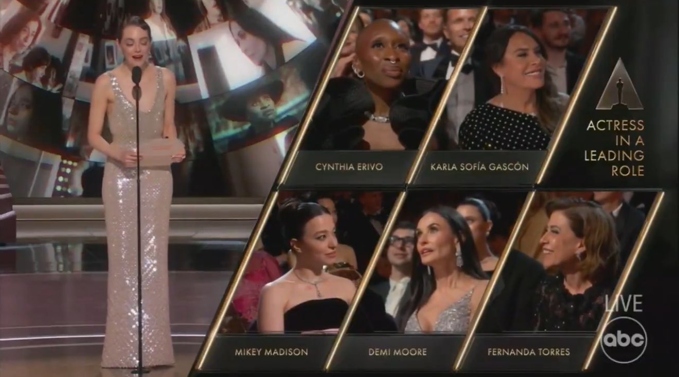 Demi Moore bersanding dengan Mikey Madison, Fernanda Torres (I’m Still Here), Cynthia Erivo (Wicked), dan Karla Sofia Gascon (Emilia Perez).