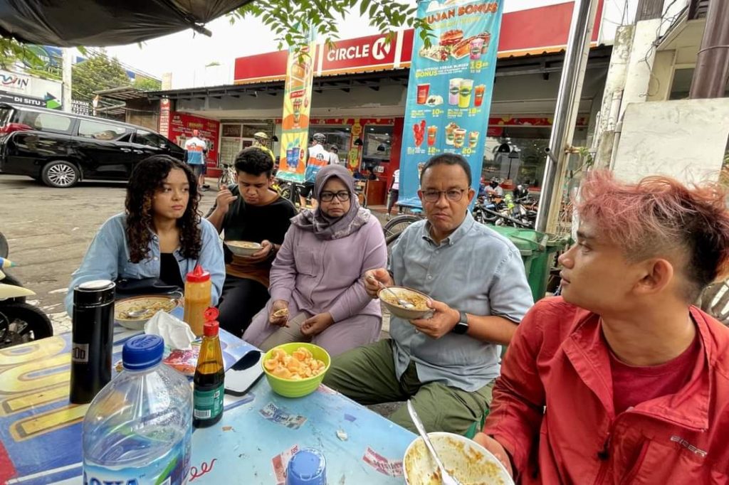 Alasan Anies mengajak keluarganya makan bubur ayam di sana sekaligus mengantarkan salah satu anaknya, Kaisar ke lokasi kumpul untuk berangkat ke turnamen bola basket di luar kota.