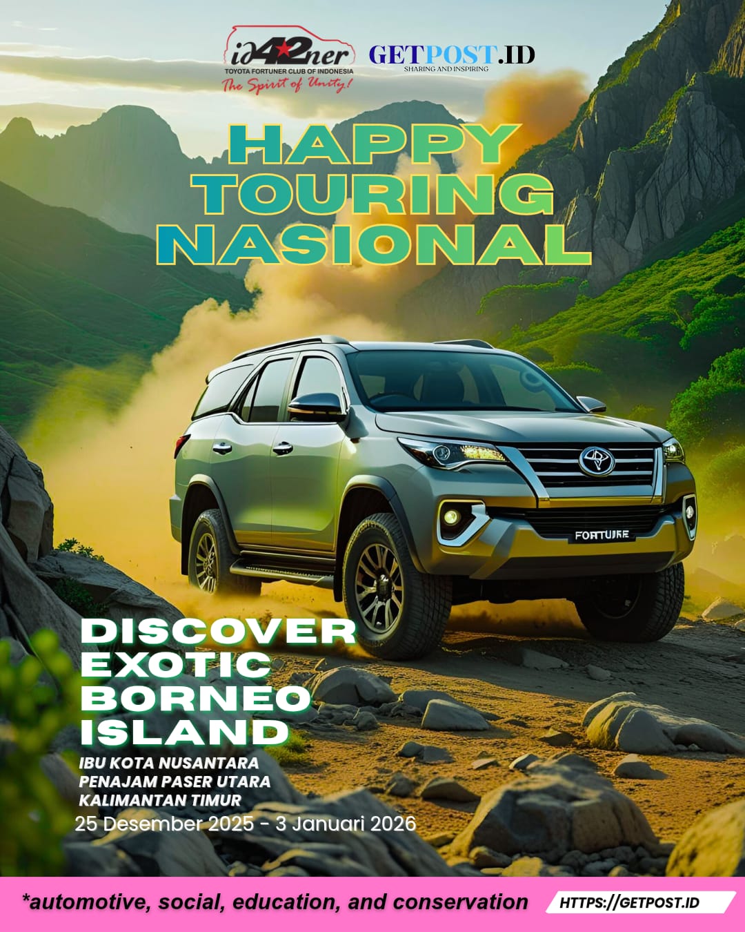 GETPOST.ID, Jakarta – Komunitas otomotif Toyota Fortuner Club of Indonesia (ID42NER) menutup rangkaian kegiatan tahun 2025 dengan touring bertajuk “Discover Borneo Island”.