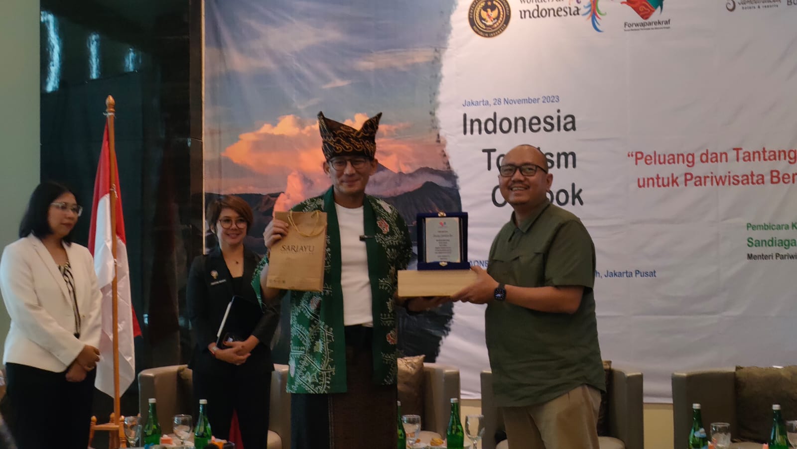 “Capaian kunjungan wisatawan mancanegara (wisman) ke Indonesia tahun ini sekitar 11 juta atau di atas target 8,5 juta. Pada 2024 kita mentargetkan 14 juta kunjungan wisman atau masih di bawah capaian 2019 sebesar 16,11 juta. Kita optimistis di 2025 sektor pariwisata akan pulih seperti semula,” kata Menparekraf Sandiaga Uno dalam Indonesia Tourism Outlook 2024 bertajuk “Peluang dan Tantangan Investasi untuk Pariwisata Berkelanjutan” yang digelar oleh Forum Wartawan Pariwisata dan Ekonomi Kreatif (Forwaparekraf) di Hotel AOne Jakarta, Selasa (28/11/2023).