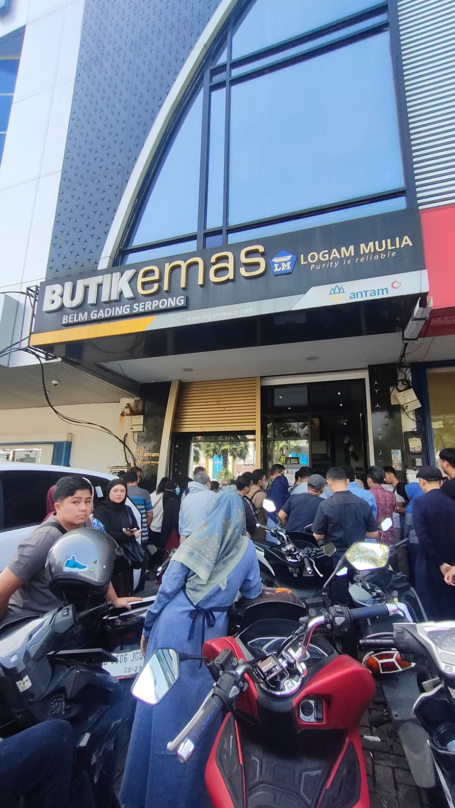Butik emas Logam Mulia (LM) Antam di Gading Serpong sejak kemarin Kamis (10/04/2025) terlihat antrian yang mengular sejak pagi. Kondisi tersebut tak jauh berbeda pada Jumat (09/04/2025), ketika banyak yang sudah datang sejak jam 6 pagi. Antrian sudah mencapai 115 orang.