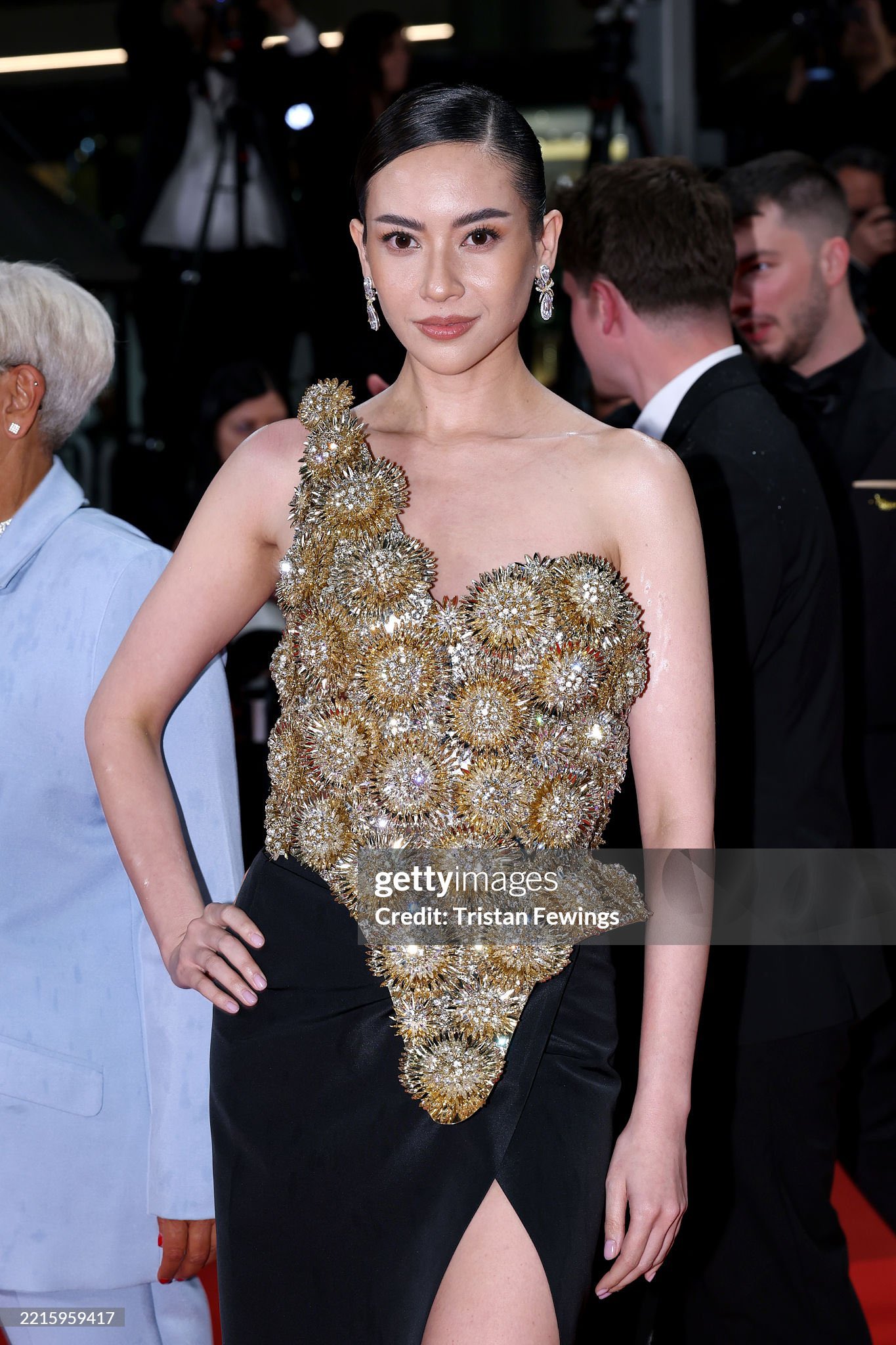Elvira tampil memukau dengan balutan gaun hijau dari designer Stella Lunardy. Ia kembali bersinar di red carpet Cannes 2025 dalam look kedua, yaitu busana couture rancangan Omran Osman.