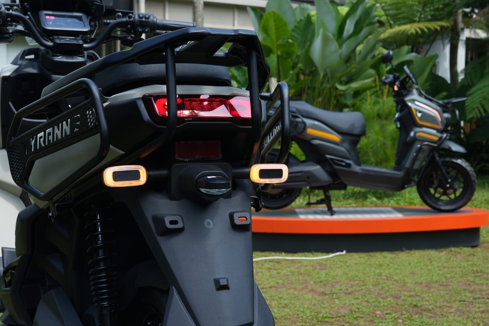 Indomobil eMotor Tyranno mengusung desain bold, tough, dan didukung ban semi-adventure untuk menaklukkan jalur perkotaan hingga melibas berbagai kondisi jalan dengan medan cukup variatif.