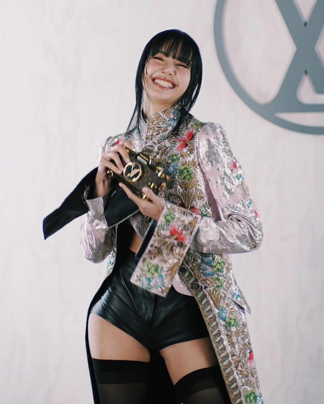 Tampilan Lisa dilengkapi dengan short leather pants pendek berwarna hitam dan stocking bernuansa senada yang mencapai pahanya dan cukup transparan. Sementara itu, Lisa pun turut menggunakan tas clutch mini dari Louis Vuitton. Uniknya clutch tersebut berbentuk layaknya kamera yang di bagian tengahnya ada logo ‘LV’ yang berwarna keemasan.