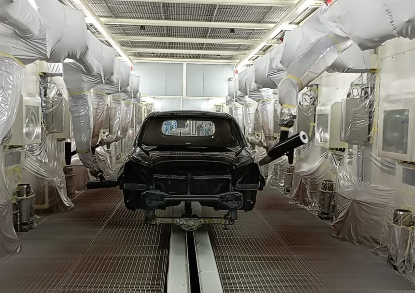 Setelah itu, pada fasilitas Painting Shop di pabrik KAP 2, bodi mobil dilakukan proses pengecatan dengan menyelupkan cairan cat dasar. Tujuannya, membuat besi tahan karat dan memperkuat cat luar.