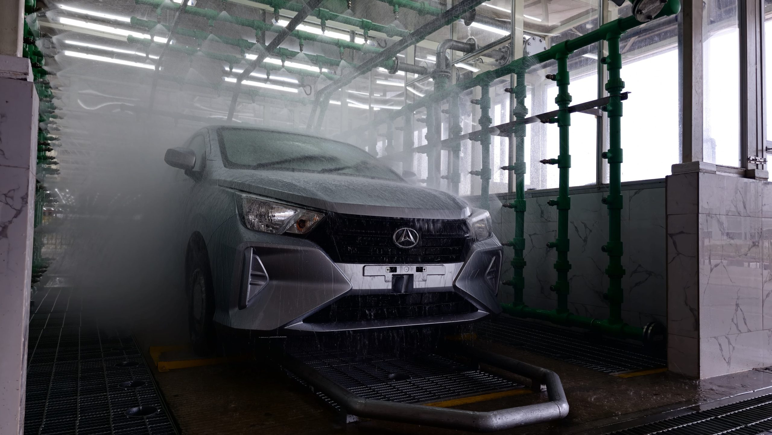 Tes kebocoran atap dan bodi di pabrik baru Daihatsu Karawang 2.