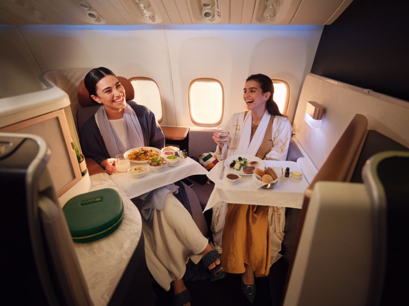 Penumpang Kelas Bisnis menikmati tempat tidur yang dapat direbahkan, Wi-Fi gratis, dan masakan Saudi pilihan seperti Kabsa dan kopi Arab, yang disajikan oleh koki dalam pesawat. Mendapat peringkat #1 secara global untuk keberangkatan tepat waktu pada tahun 2024 dan kini memimpin inovasi digital dengan Travel Companion yang didukung AI, Saudia memberikan pengalaman perjalanan yang efisien dan mendalam yang dirancang untuk pelancong global modern.
