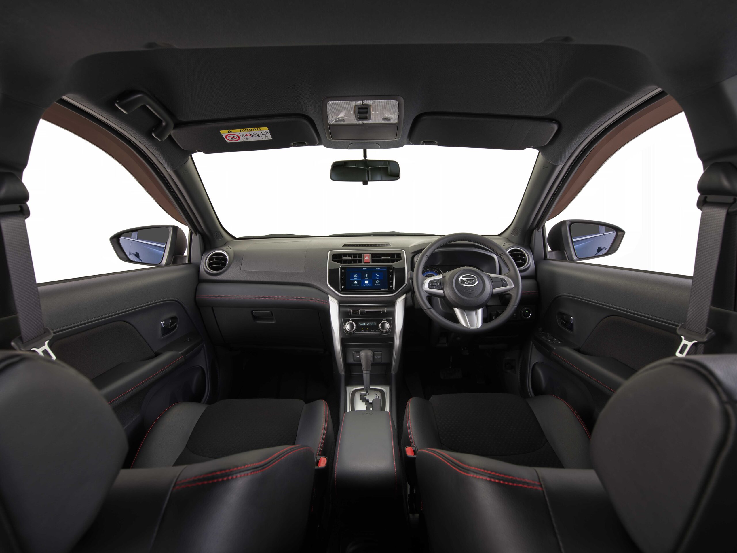 Suasana Interior Terios dengan ambience sporty adventure berdominasi warna gelap serta aksen merah