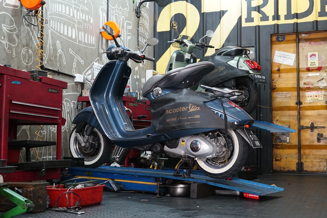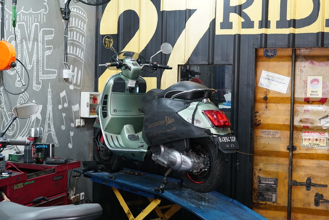 Sebelum ditinggal untuk mudik, sebaiknya lakukan servis berkala di bengkel Vespa matic terdekat. Gantilah pelumas mesin dan pelumas gardan, supaya Vespa matic lebih mudah dihidupkan saat digunakan kembali untuk beraktivitas lagi pasca-mudik.